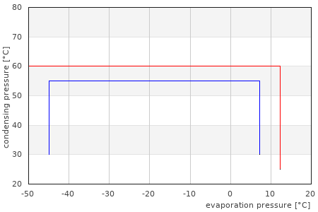 制冷量 冷却矩阵 Max. ambient temp.: 43°C F2 (fan 3m/s)