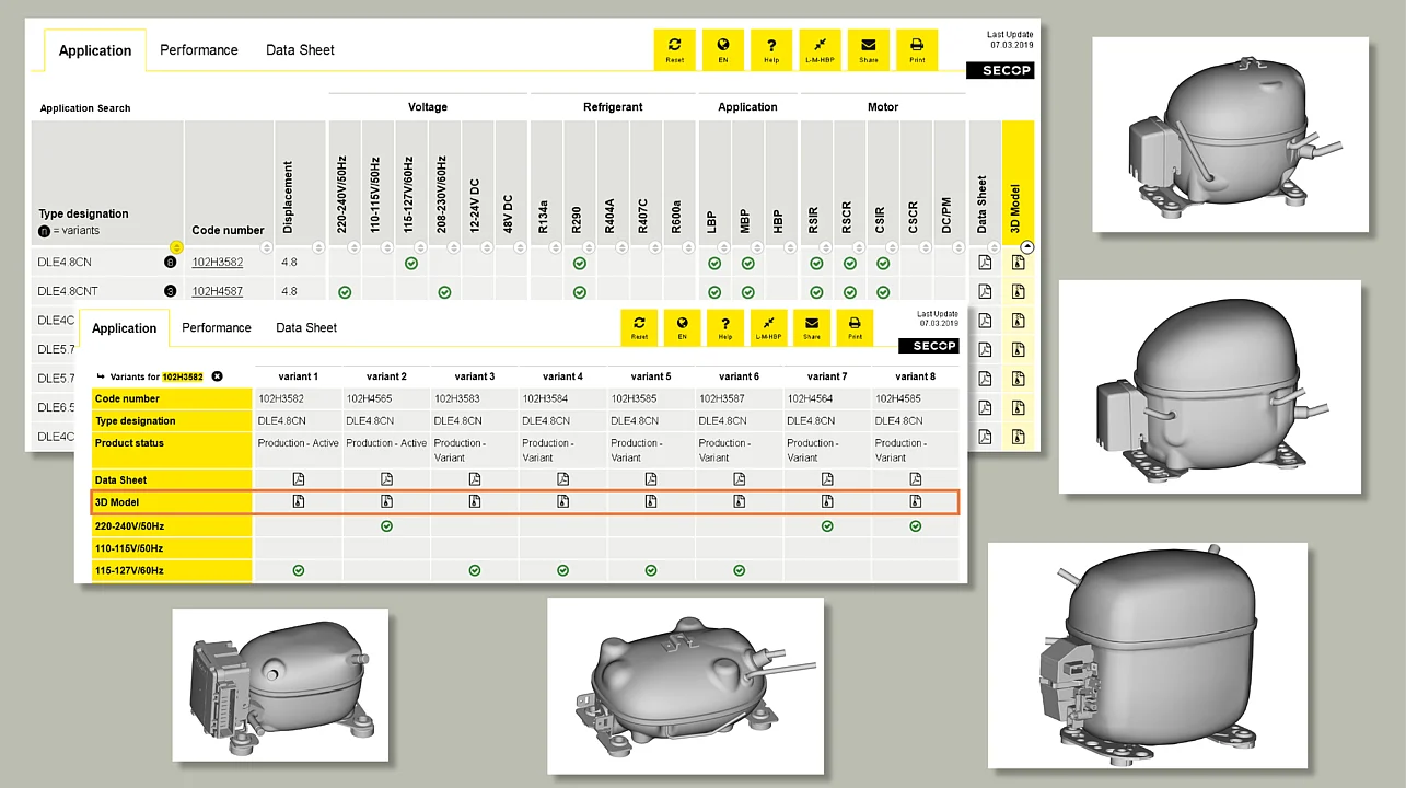 Mit dem neuesten Update können Nutzer auch 3D-Modell-CAD-Dateien für Secop-Kompressoren herunterladen.