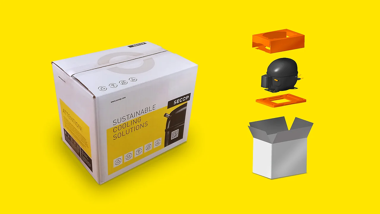 Gracias al nuevo embalaje, Secop podrá aumentar el volumen por palé de los compresores Single Pack para ofrecer un mejor servicio a nuestros clientes. La carga por palé aumentará de las 42 unidades actuales a 56 unidades para optimizar la carga con menos espacio vacío en contenedores y camiones, al tiempo que mejorará el tiempo de preparación de la carga en nuestras fábricas.