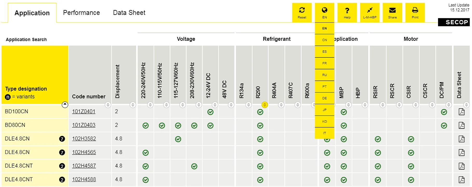 Nidec GA Compressors'PRODUCT SELECTOR la herramienta perfecta para encontrar datos técnicos de cientos de compresores Secop se ha actualizado con 9 idiomas adicionales...: