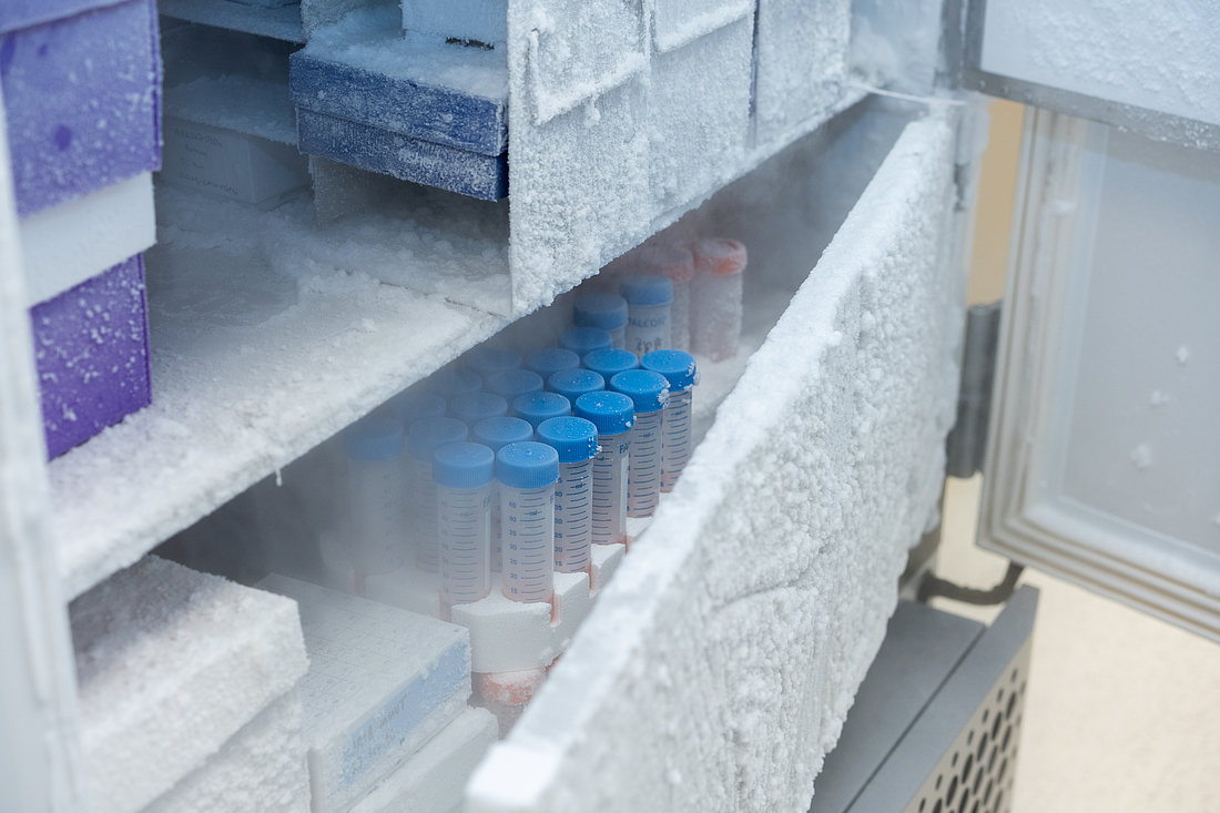 • Isolated pathogens are stored at ultra-low temperatures in a laboratory freezer