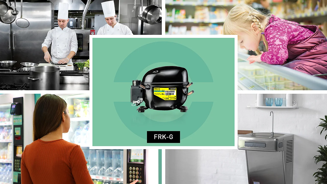 FRK-G compressors were developed to offer a reliable, top-performing, and cost-effective solution for the next generation of light commercial cabinets offering high energy efficiency.