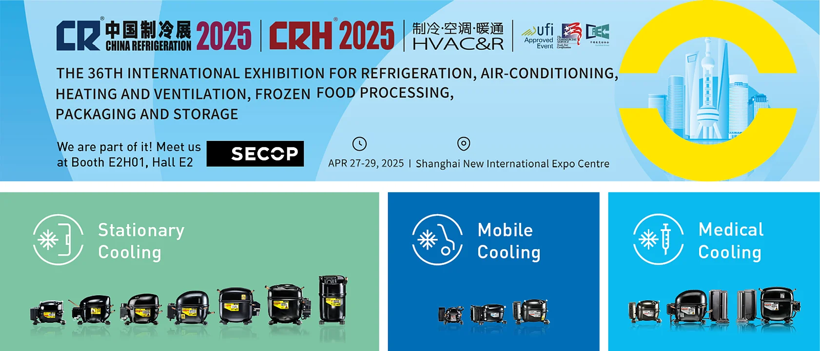 From April 27 to 29 at the Shanghai New International Expo Center (No. 2345 Longyang Road, Pudong New District, Shanghai) for the China Refrigeration 2025 Expo, Secop invites you at Booth E2H01 in Hall E2.