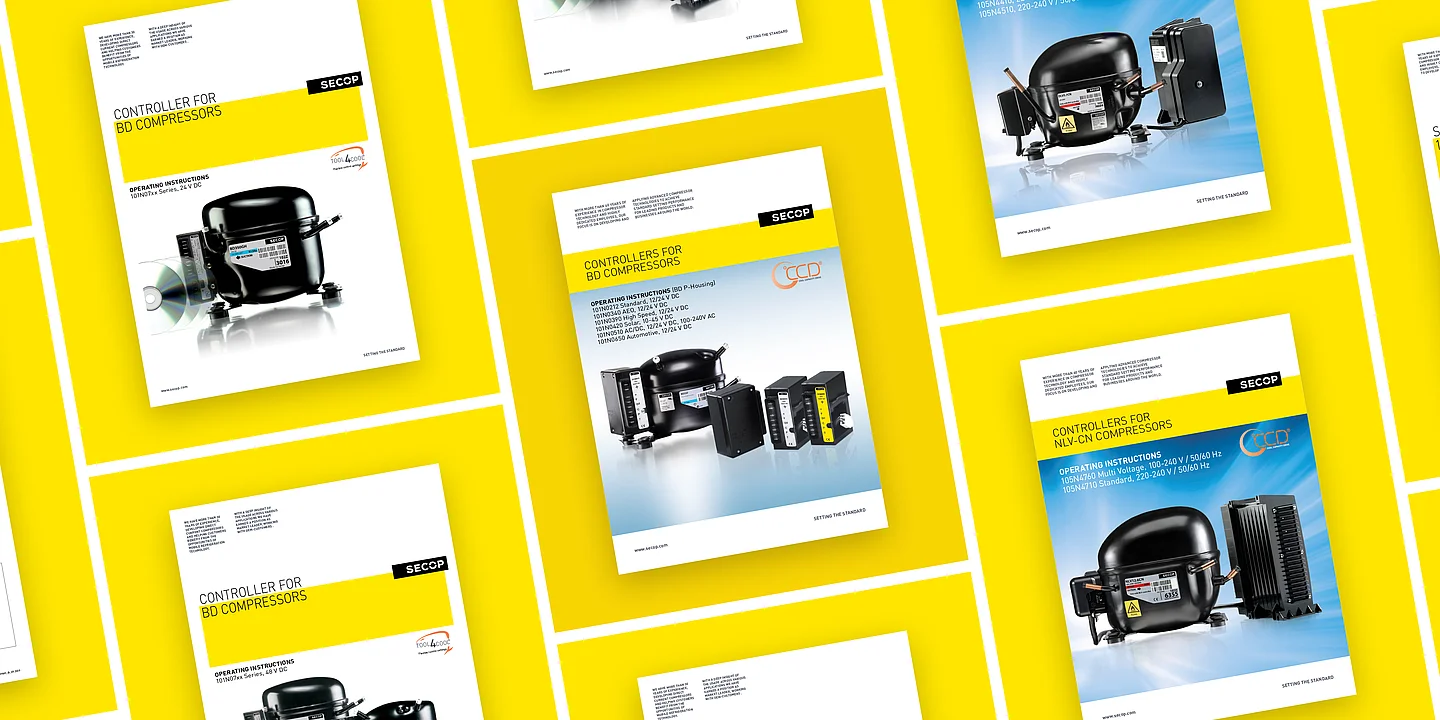 Secop Operating Instructions support the user in the correct installation and use of variable-speed compressors and controllers. They contain information e.g. on installation (mechanical and electrical), speed control and technical data (controller, compressor, capacity).