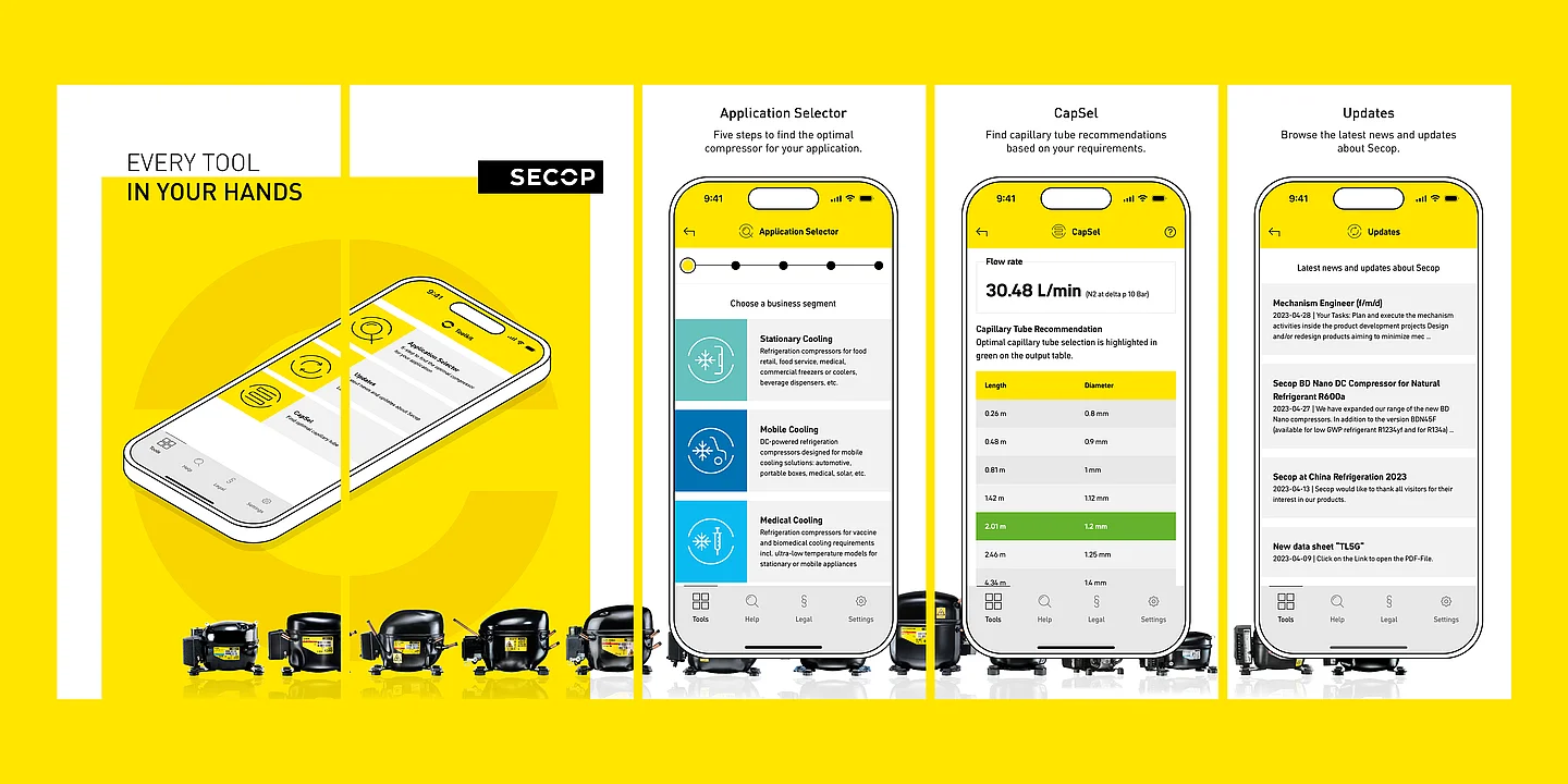 Secop was formerly known as Danfoss Compressors. Our first selection program DanCap was developed in 2006 and is no longer supported. It was renamed to CapSel in 2012. As we update our software to reflect our current knowledge and experience, the CapSel app will showing improved calculation results compared to the old DanCap program.